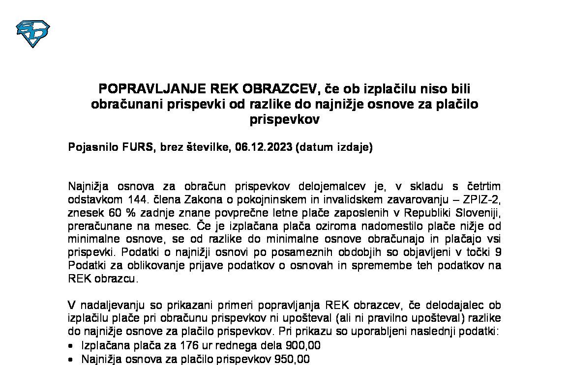 Popravki REK na podlagi prejetih obvestil FURS o visokih izplačilih povračil stroškov v zvezi z delom 27.10.2025 29.10.2025