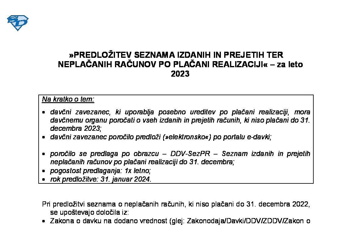 PREDLOŽITEV POROČILA O DOBAVI BLAGA ALI STORITEV PO 76.A ČLENU ZDDV-1 - leto 2026 04.12.2025