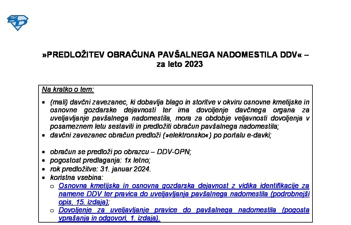 PREDLOŽITEV POSEBNEGA OBRAČUNA DDV IN PLAČEVANJE DAVČNE OBVEZNOSTI PO POSEBNI UREDITVI – UNIJSKA UREDITEV - leto 2026 17.12.2025