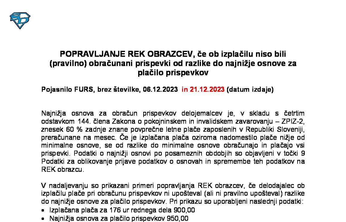 Popravki REK na podlagi prejetih obvestil FURS o visokih izplačilih povračil stroškov v zvezi z delom 27.10.2025 29.10.2025