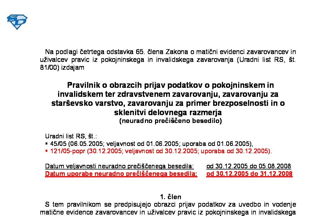Pravilnik o obrazcih za obračun prispevkov za socialno varnost (neuradno prečiščeno besedilo - NUPB) 01.07.2025 27.05.2025