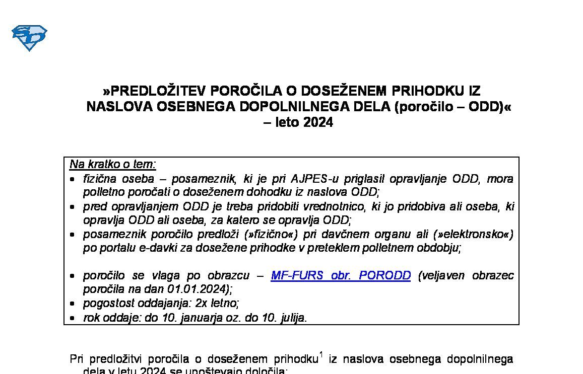 PREDLOŽITEV POROČILA O DOSEŽENEM PRIHODKU IZ NASLOVA OSEBNEGA DOPOLNILNEGA DELA (poročilo – ODD) - leto 2026 13.01.2026