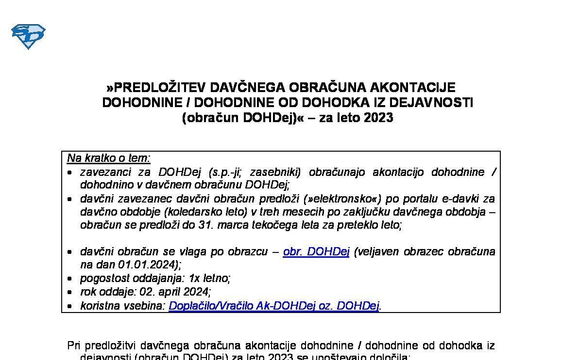 DOSTAVA PODATKOV POTREBNIH ZA ODMERO DODATNEGA DAVKA OD DOHODKOV ČLANOV POSLOVODSTEV IN NADZORNIH ORGANOV (DDDČPNO) V ČASU FINANČNE IN GOSPODARSKE KRIZE - ZA leto 2024 28.01.2025