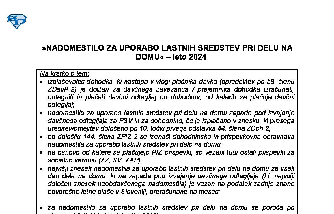 NADOMESTILO ZA UPORABO LASTNIH SREDSTEV PRI DELU NA DOMU - leto 2025 28.02.2025