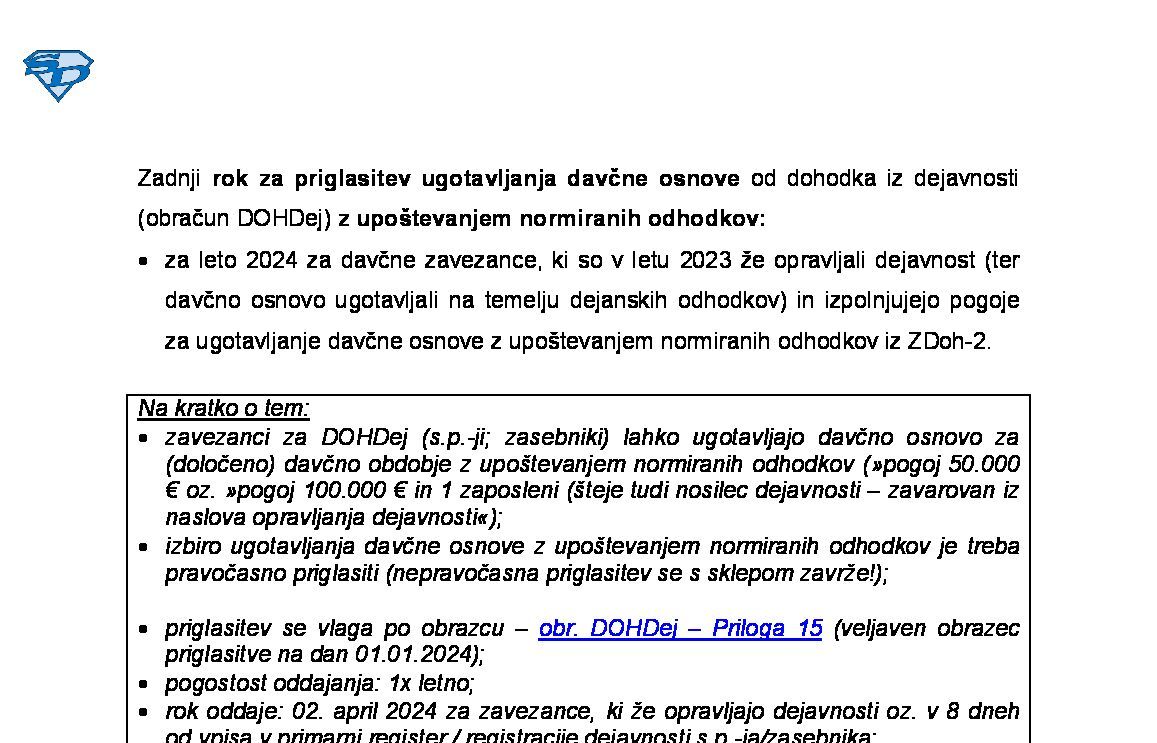 Sprememba predhodne AkDoh / AkDoh od dohodka iz dejavnosti za leto 2026 (obračun DOHDej) med davčnim letom 2026-08-03 00:00:00