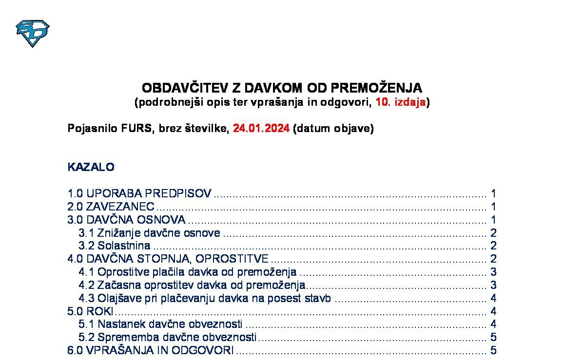 OBDAVČITEV Z DAVKOM OD PREMOŽENJA (podrobnejši opis ter vprašanja in odgovori, 12. izdaja) 29.12.2025 16.01.2026