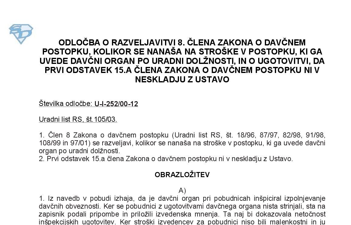 Odločba Ustavnega sodišča - 8. člen Pravilnik o načinu izvrševanja pooblastil uradnih oseb FURS in označitvi službenih vozil FURS (15.11.2024) 03.10.2024 19.11.2024