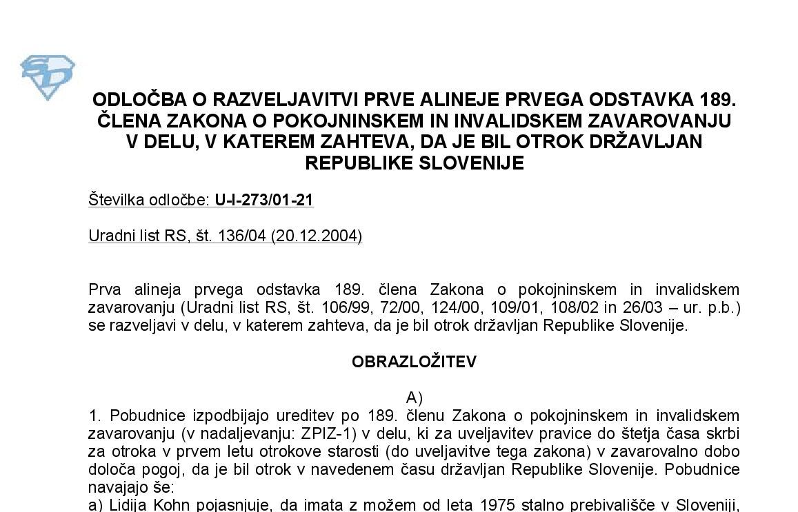 Odločba Ustavnega sodišča - 1. poved tretjega odstavka 126. člena ZPIZ-2 (21.06.2024) 30.05.2024 27.06.2024