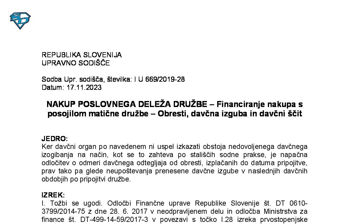 DDPO IN PREKLUZIJA DOKAZOV – Davčno priznan odhodek – Rezervacije – Prikrito izplačilo dobička (I U 652/2021-12) 15.07.2024 30.01.2025