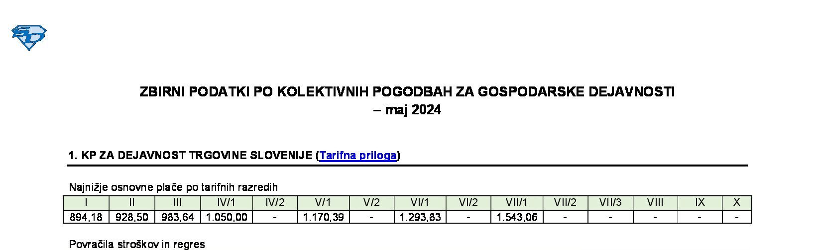 ZBIRNI PODATKI PO KOLEKTIVNIH POGODBAH ZA GOSPODARSKE DEJAVNOSTI - november 2025 04.12.2025