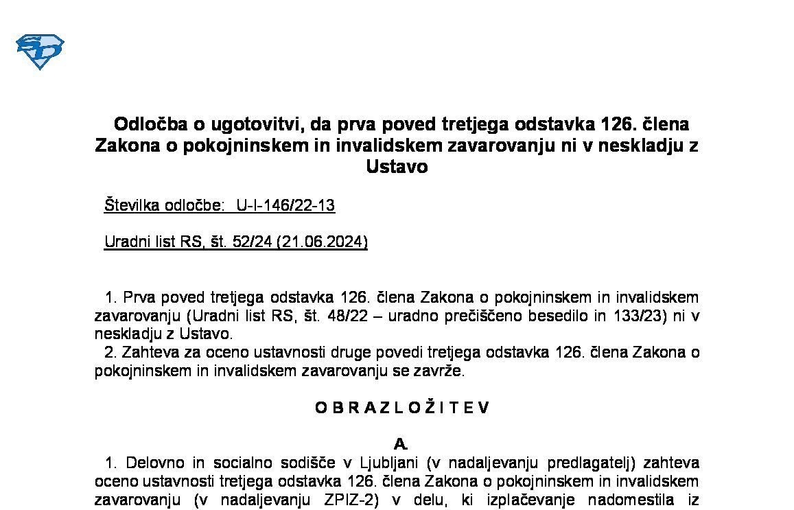 Odločba Ustavnega sodišča - 396. člen ZPIZ-2 (13.12.2023) 23.11.2023 15.12.2023