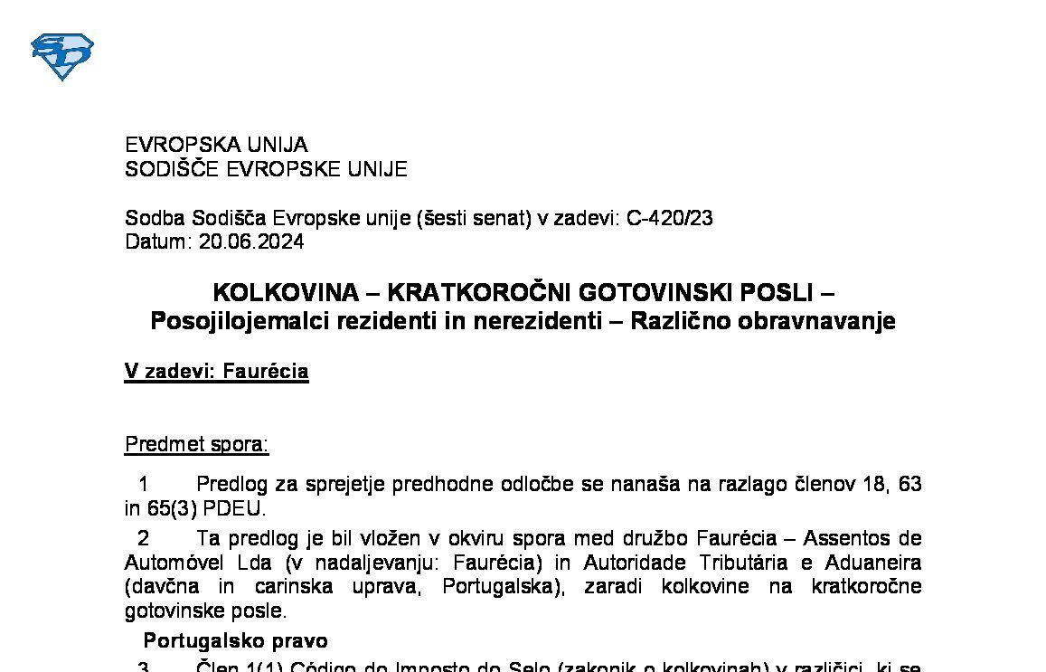 ZAOKROŽEVANJE VREDNOSTI V EURIH PRI PRERAČUNU NACIONALNE VALUTE OB PREHODU NA EURO IN VIŠJI ZNESEK DAVKA (C-359/05) 23.02.2007 23.02.2007