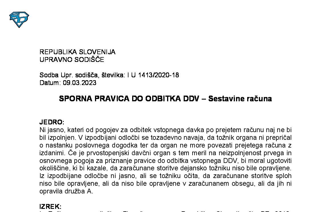 IZPOLNJEVANJE POGOJEV ZA DOBAVO BLAGA ZNOTRAJ UNIJE, OPROŠČENO PLAČILA DDV NA PODLAGI 46. ČLENA ZDDV-1 – Nepopolne CMR listine (I U 1704/2021-38) 27.11.2024 15.10.2025