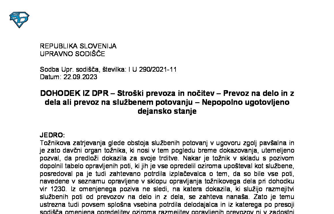 DAVČNO PRIZNANI ODHODKI – RAZMEJITEV DRUGIH DOHODKOV PO ZDoh-2 OD PRIKRITEGA IZPLAČILA DOBIČKA (I U 1709/2020-49) 16.10.2023 24.04.2024