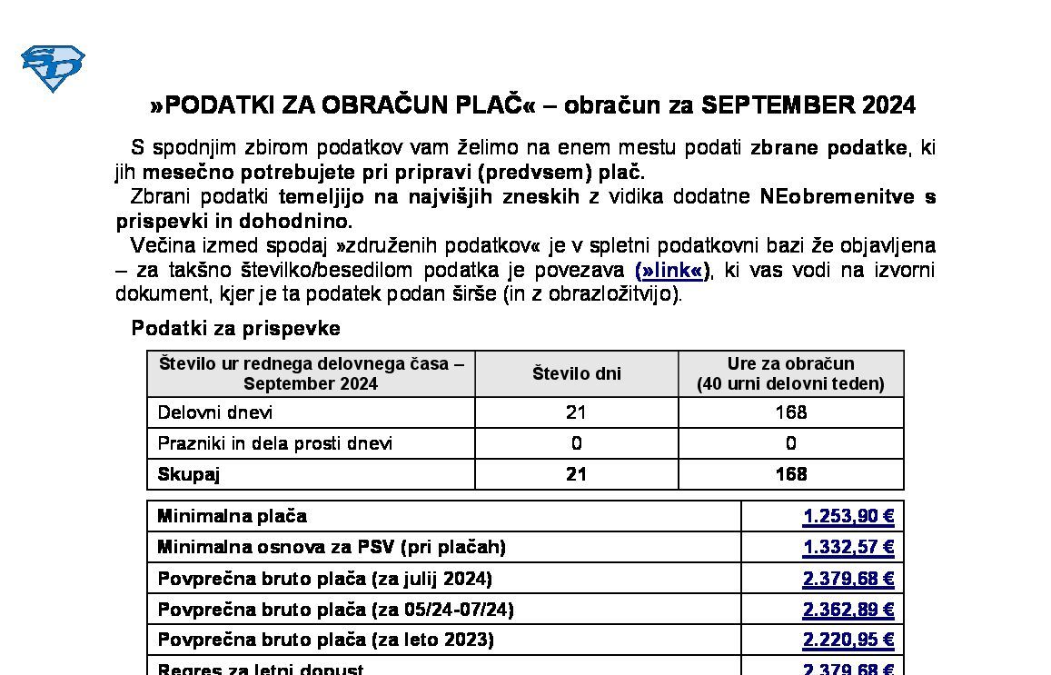 PODATKI ZA OBRAČUN PLAČ – obračun za Oktober 2019 25.10.2019