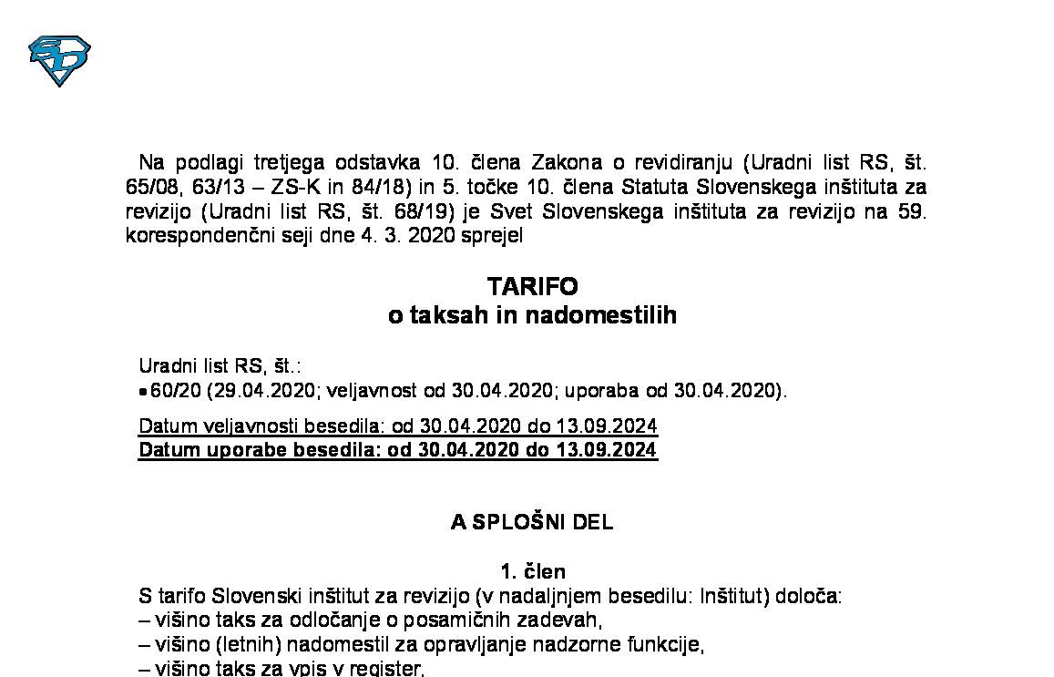 Tarifa o taksah in nadomestilih (NUPB - neuradno prečiščeno besedilo) 06.08.2025 07.08.2025