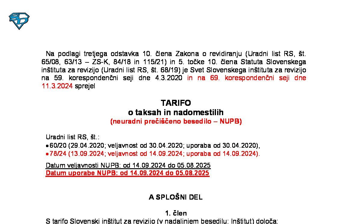 Tarifa o taksah in nadomestilih (NUPB - neuradno prečiščeno besedilo) 06.08.2025 07.08.2025