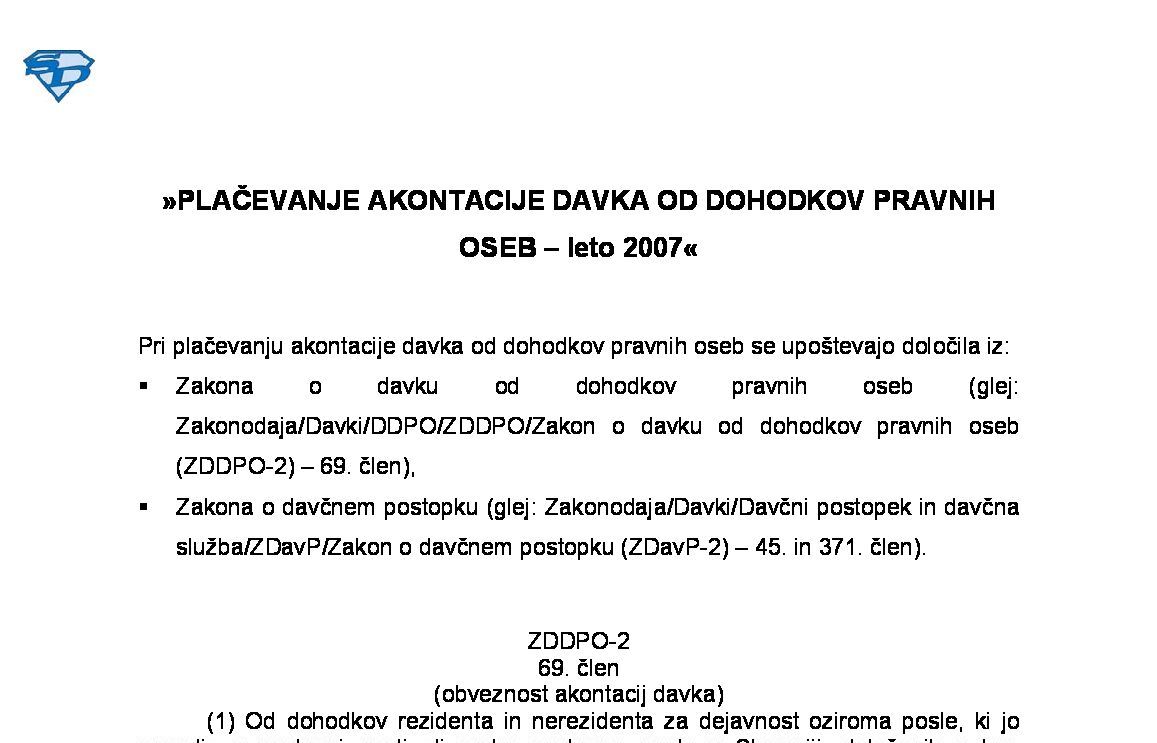 PLAČEVANJE AKONTACIJE DAVKA OD DOHODKOV PRAVNIH OSEB (DDPO) – za leto 2025 05.12.2024