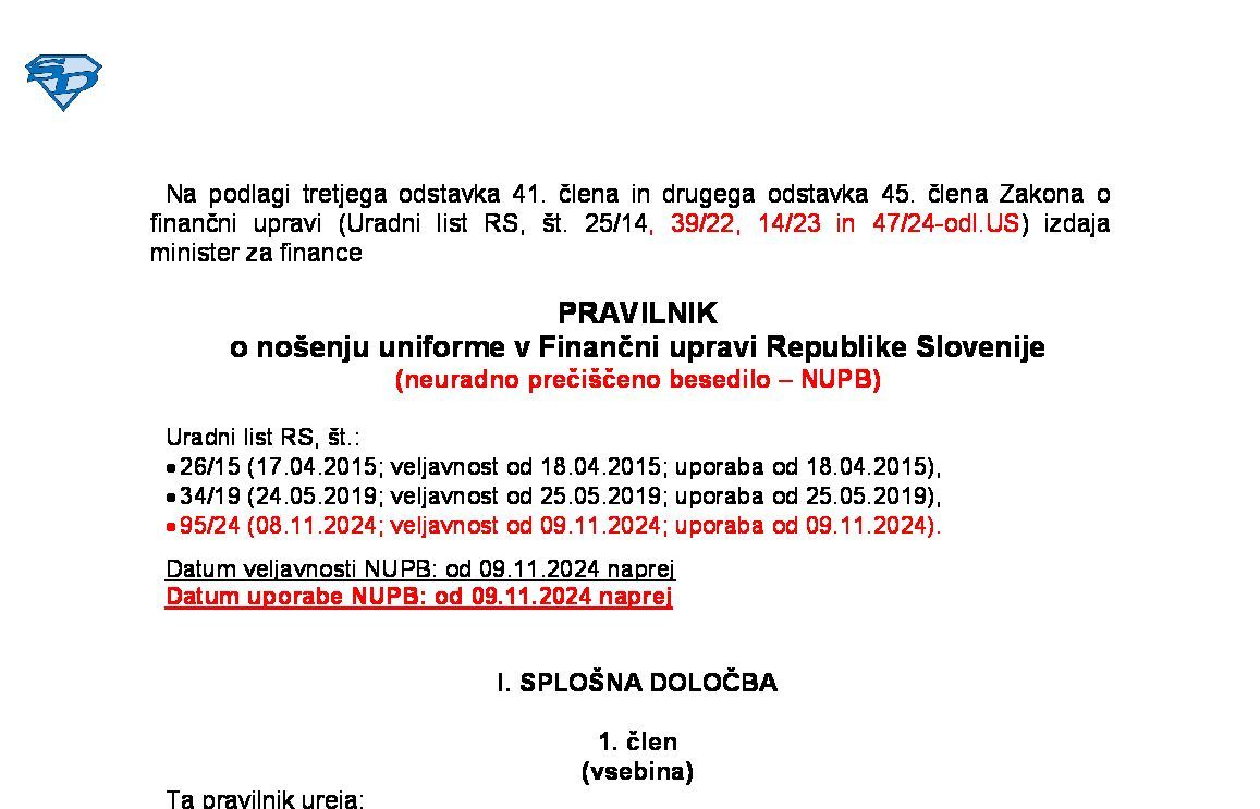 | Pravilnik o načinu izvrševanja pooblastil uradnih oseb Finančne uprave Republike Slovenije in označitvi službenih vozil Finančne uprave Republike Slovenije | 01.08.2015 | 03.08.2015 | ||