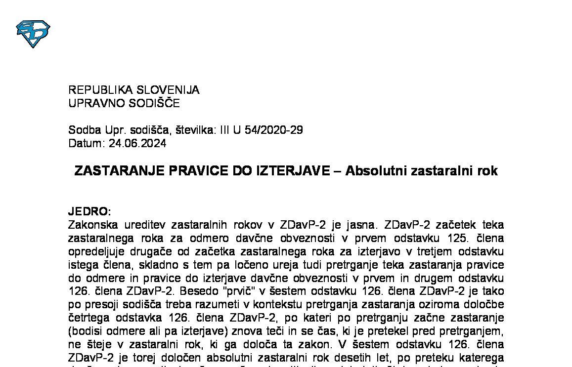 ZASTARANJE IZTERJAVE DAVKA - Splošna ureditev relativnega zastaranja (U 2427/2005) 05.02.2008 28.10.2009