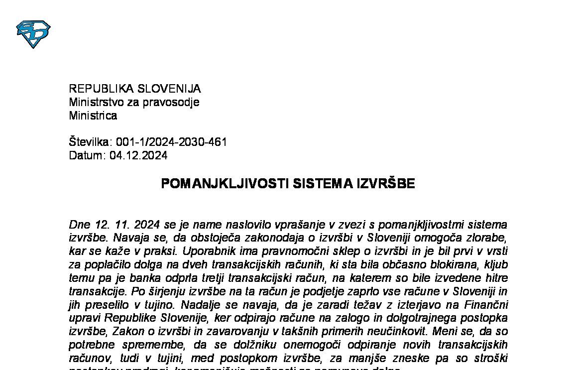 ODGOVORNOST DIREKTORJEV ZA KRŠTIVE PODJETJA – Odziv Ministrstva za gospodarstvo, turizem in šport 28.05.2025