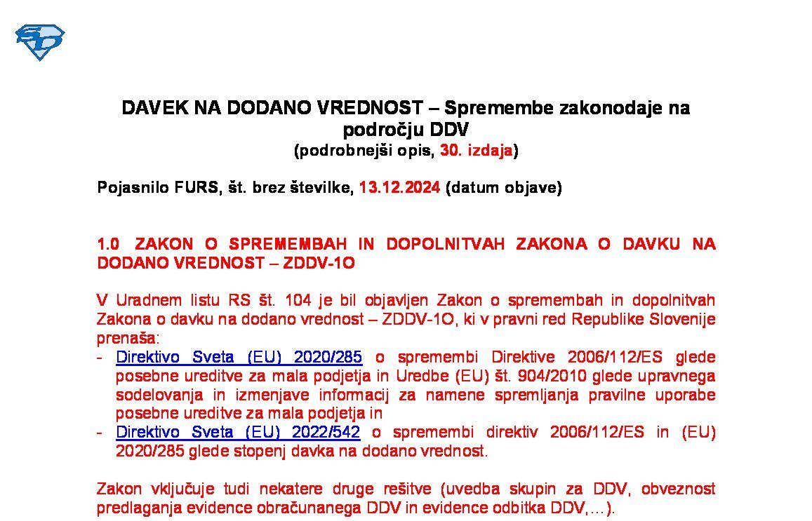 EVIDENCI OBRAČUNANEGA DDV IN ODBITKA DDV TER PREDIZPOLNITEV OBRAČUNA DDV (podrobnejši opis, 18. izdaja) 01.12.2025 01.12.2025