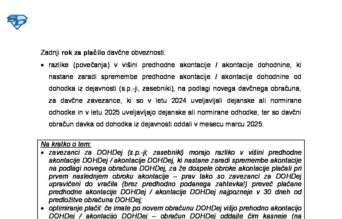 Sprememba predhodne AkDoh / AkDoh od dohodka iz dejavnosti za leto 2026 (obračun DOHDej) med davčnim letom 2026-08-03 00:00:00