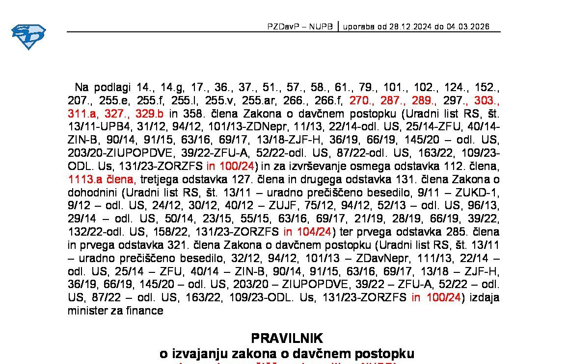 Pravilnik o izvajanju Zakona o davčnem postopku (neuradno prečiščeno besedilo) 10.11.2007 10.04.2009 12.11.2007