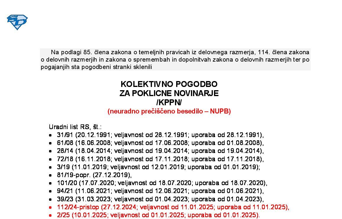 35.0 KOLEKTIVNA POGODBA ZA KULTURNE DEJAVNOSTI V REPUBLIKI SLOVENIJI (KPK) 22.11.2025 25.11.2025