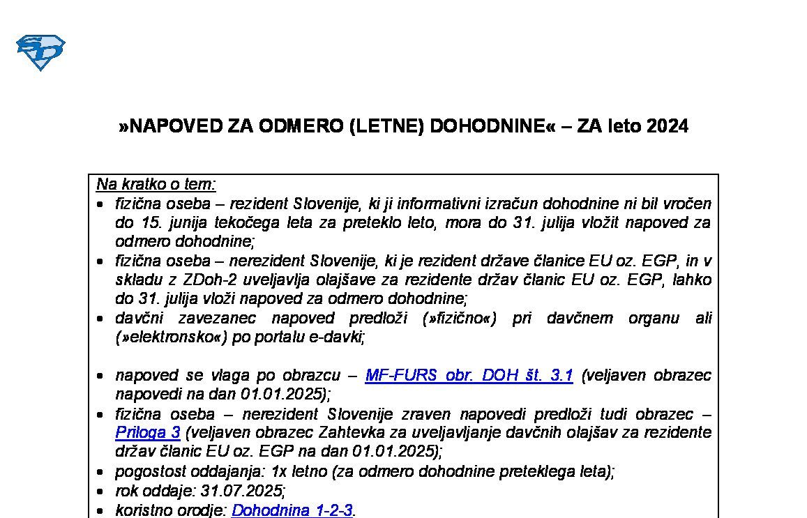 NAPOVED ZA ODMERO DODATNEGA DAVKA OD DOHODKOV ČLANOV POSLOVODSTEV IN NADZORNIH ORGANOV (DDDČPNO) - ZA leto 2024 29.01.2025