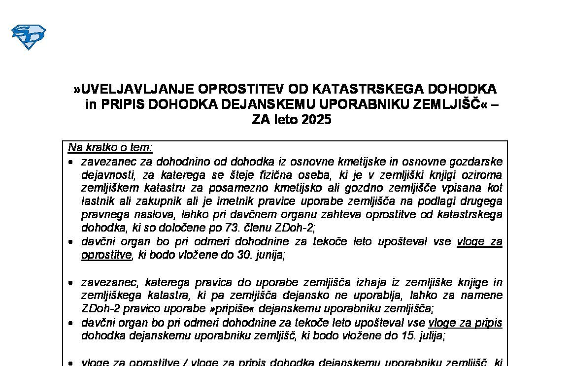 PREDLOŽITEV REK OBRAZCEV ZA DOHODKE IZ DELOVNEGA RAZMERJA, KI SE NE VŠTEVAJO V DAVČNO OSNOVO (REK-i – oproščeni dohodki) - v letu 2025 28.01.2025
