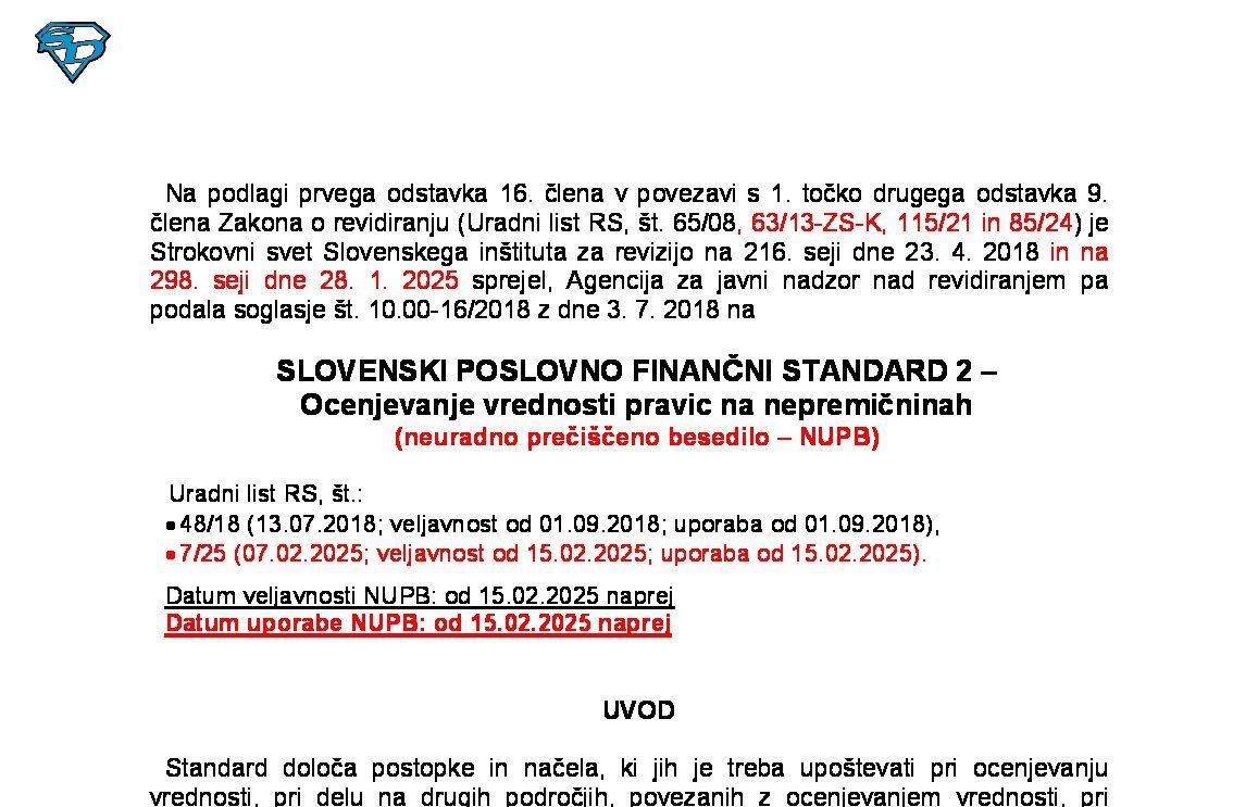 Slovenski poslovnofinančni standard 4 - Uporaba naziva pooblaščeni ocenjevalec vrednosti 19.12.2013 20.01.2014