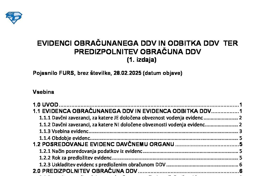 EVIDENCI OBRAČUNANEGA DDV IN ODBITKA DDV TER PREDIZPOLNITEV OBRAČUNA DDV (podrobnejši opis, 18. izdaja) 01.12.2025 01.12.2025