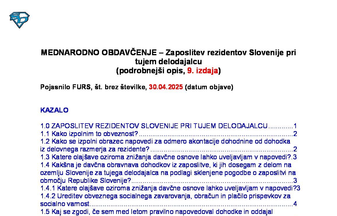 MEDNARODNO OBDAVČENJE – Obdavčenje dohodkov iz zaposlitve po mednarodnih pogodbah (podrobnejši opis, 3. izdaja) 19.11.2025 24.11.2025