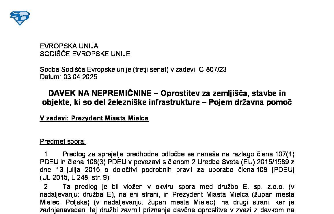 PROSTO GIBANJE DELAVCEV – Nacionalna ureditev, s katero se zahteva, da je del obdobja usposabljanja odvetniškega pripravnika opravljen pri odvetniku s sedežem na nacionalnem ozemlju (C-807/23) 03.04.2025 04.04.2025
