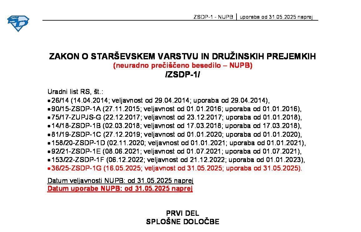 ZAKON O STARŠEVSKEM VARSTVU IN DRUŽINSKIH PREJEMKIH (ZSDP-1 - neuradno prečiščeno besedilo) 01.01.2023 [!] 30.05.2025 07.12.2022