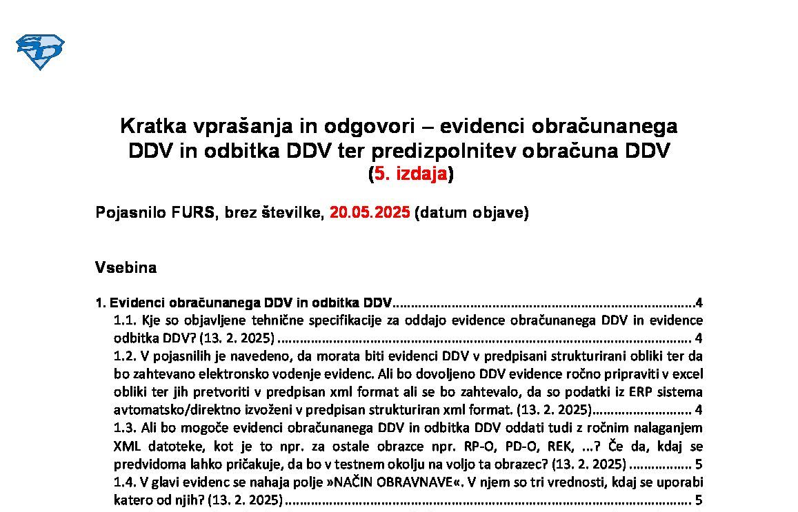 Kratka vprašanja in odgovori – evidenci obračunanega DDV in odbitka DDV ter predizpolnitev obračuna DDV (16. izdaja) 01.12.2025 02.12.2025