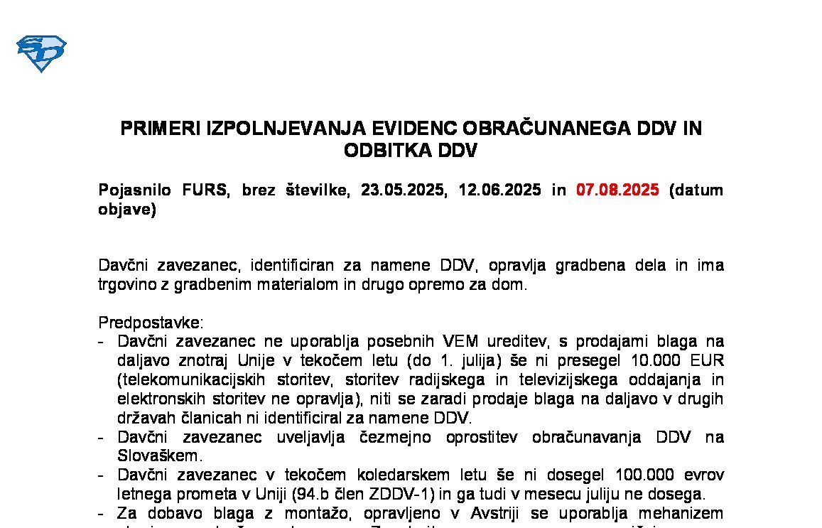 EVIDENCI OBRAČUNANEGA DDV IN ODBITKA DDV TER PREDIZPOLNITEV OBRAČUNA DDV (podrobnejši opis, 18. izdaja) 01.12.2025 01.12.2025