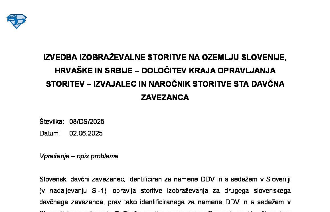 SLOVENSKI DAVČNI ZAVEZANEC OPRAVI STORITEV SEČNJE DREVES (GOZDA) NA OZEMLJU SLOVENIJE HRVAŠKEMU DAVČNEMU ZAVEZANCU – Določitev kraja opravljanja storitev skladno z določili ZDDV-1 25.11.2025 25.11.2025
