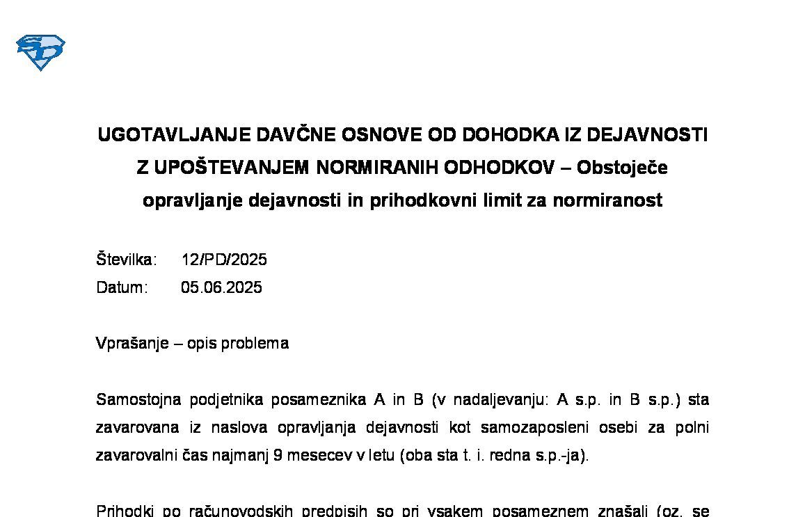 DOHODNINA OD DOHODKA IZ DEJAVNOSTI – Ugotavljanje davčne osnove z upoštevanjem dejanskih odhodkov – Stroški prehrane zavezanca med delom – Davčno priznani odhodki 24.11.2025 28.11.2025