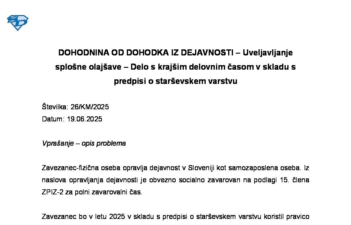 DOHODNINA OD DOHODKOV IZ DELOVNEGA RAZMERJA – Izračun akontacije dohodnine – Upoštevanje splošne olajšave in olajšave za vzdrževane družinske člane 19.11.2025 26.11.2025