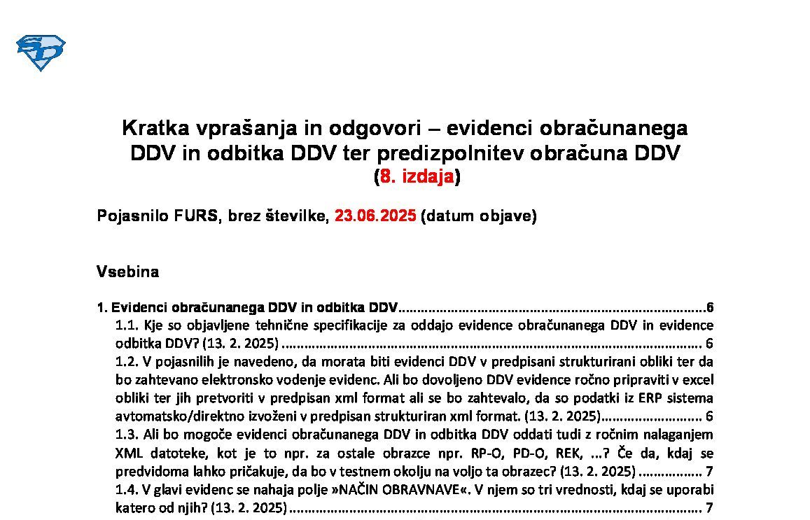 Kratka vprašanja in odgovori – evidenci obračunanega DDV in odbitka DDV ter predizpolnitev obračuna DDV (16. izdaja) 01.12.2025 02.12.2025