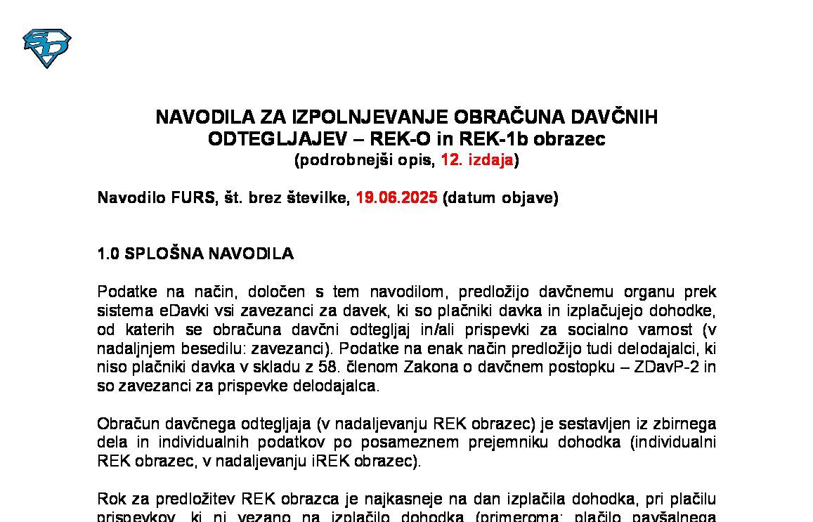NAVODILA ZA IZPOLNJEVANJE OBRAČUNA DAVČNIH ODTEGLJAJEV – REK-O in REK-1b obrazec (podrobnejši opis, 13. izdaja) 24.11.2025 25.11.2025