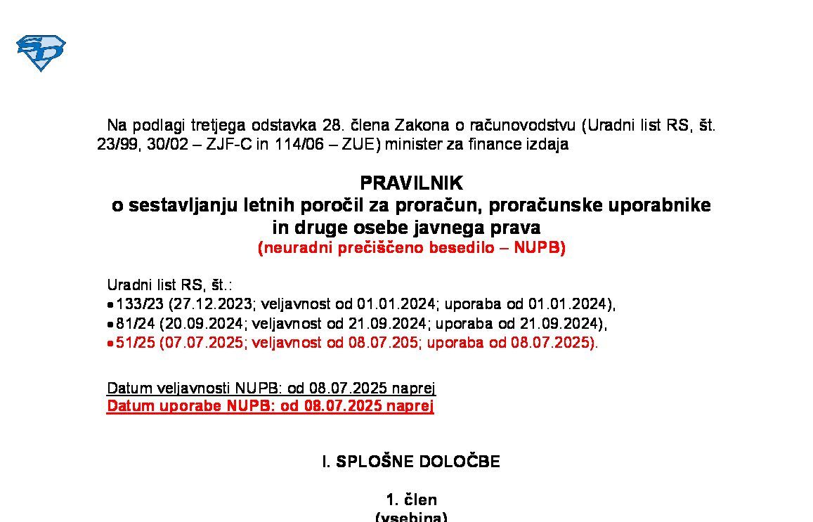 Pravilnik o enotnem kontnem načrtu za proračun, proračunske uporabnike in druge osebe javnega prava (NUPB - neuradno prečiščeno besedilo) 08.07.2025 11.07.2025