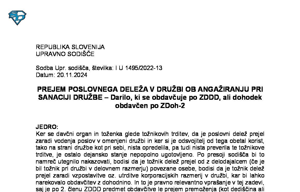 OBRESTI NA DENARNE DEPOZITE PRI BANKI NA HRVAŠKEM – Davčno rezidentstvo in obdavčitev po ZDoh-2 (I U 248/2021-57) 29.11.2024 20.05.2025