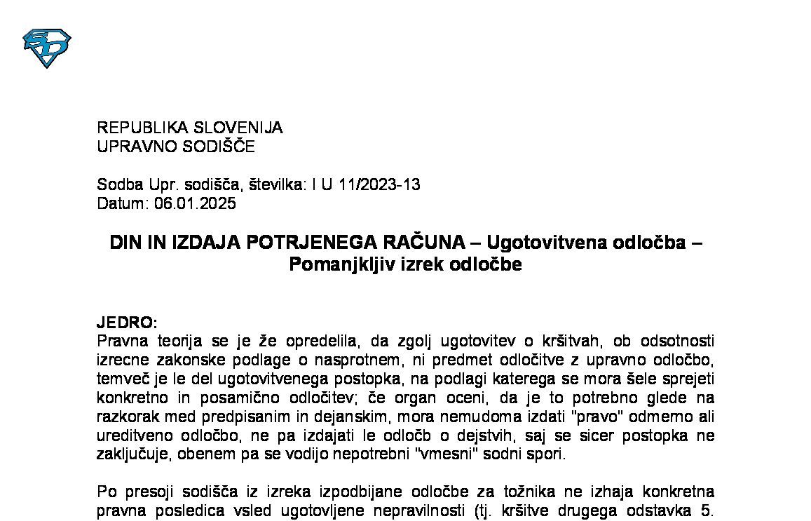 VRAČILO PLAČANIH DAJATEV PO DAVČNEM OBRAČUNU IZ POSTOPKA DIN (IV U 124/2022-15) 10.03.2025 12.09.2025