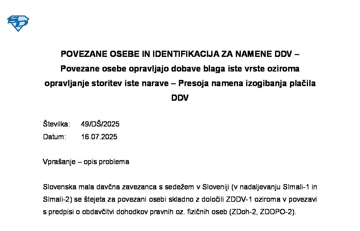 PRIDOBITEV IDENTIFIKACIJSKE ŠTEVILKE ZA DDV PRI MALEM DAVČNEM ZAVEZANCU – NAKUPI RABLJENEGA BLAGA OD OBDAVČLJIVIH PREPRODAJALCEV IZ DRUGIH DRŽAV ČLANIC EU – Ali preseganje nakupov v vrednosti 10.000 EUR pomeni obveznost za identifikacijo za DDV? 27.11.2025 27.11.2025