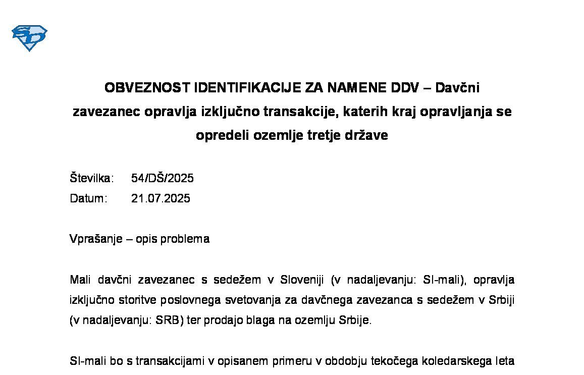 PRIDOBITEV IDENTIFIKACIJSKE ŠTEVILKE ZA DDV PRI MALEM DAVČNEM ZAVEZANCU – NAKUPI RABLJENEGA BLAGA OD OBDAVČLJIVIH PREPRODAJALCEV IZ DRUGIH DRŽAV ČLANIC EU – Ali preseganje nakupov v vrednosti 10.000 EUR pomeni obveznost za identifikacijo za DDV? 27.11.2025 27.11.2025