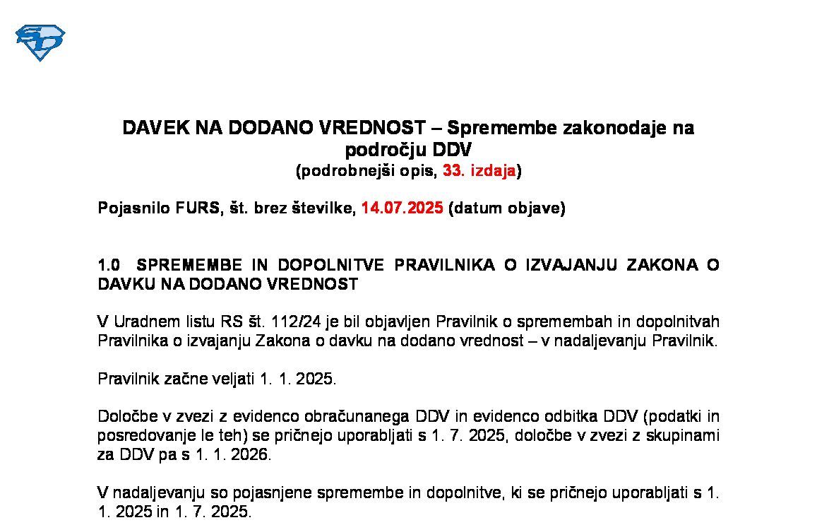 EVIDENCI OBRAČUNANEGA DDV IN ODBITKA DDV TER PREDIZPOLNITEV OBRAČUNA DDV (podrobnejši opis, 18. izdaja) 01.12.2025 01.12.2025