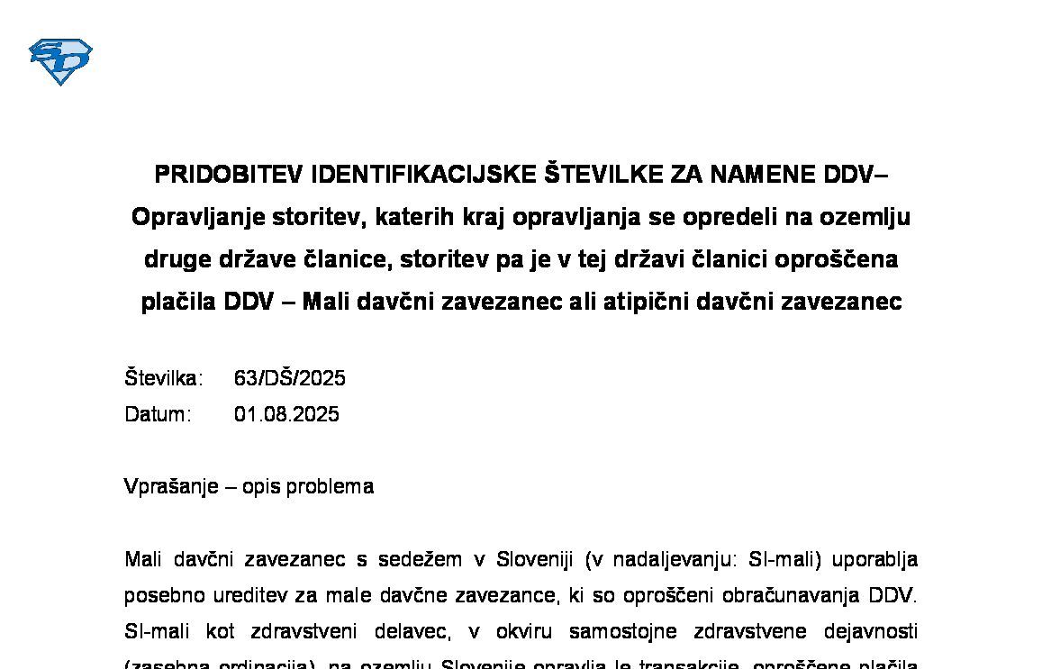 PRIDOBITEV IDENTIFIKACIJSKE ŠTEVILKE ZA DDV PRI MALEM DAVČNEM ZAVEZANCU – NAKUPI RABLJENEGA BLAGA OD OBDAVČLJIVIH PREPRODAJALCEV IZ DRUGIH DRŽAV ČLANIC EU – Ali preseganje nakupov v vrednosti 10.000 EUR pomeni obveznost za identifikacijo za DDV? 27.11.2025 27.11.2025